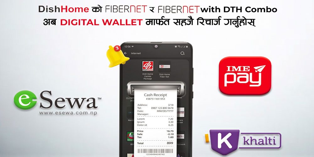 आइएमई पे, इसेवा, खल्ति र प्रभु पेमार्फत सजिलै अनलाइन रिचार्ज गर्न सकिने डिसहोमले जनाएको छ ।