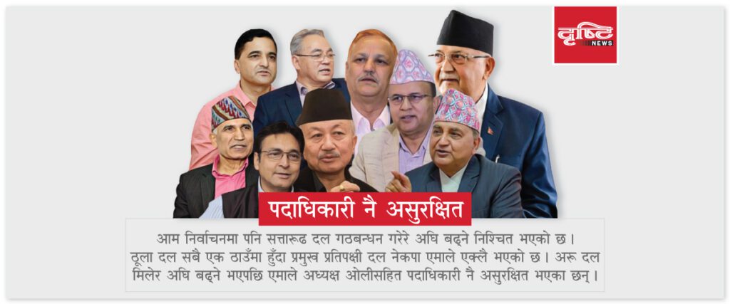 आगामी निर्वाचनमा पाँचदलीय गठबन्धनसँग फराकिलो मतान्तरले हार्ने तथ्यांक देखेपछि एमाले नेताहरूको निद्रा नै हराएको छ । एमाले उपाध्यक्षहरू रामबहादुर थापा, युवराज ज्ञवाली र अष्टलक्ष्मी शाक्य हार्ने चुनाव नलड्ने मनस्थितिमा छन् । महासचिव शंकर पोखरेलले चुनावी अभियान संचालन गर्ने भन्दै समानुपातिकमा बस्न खोजेका छन् ।