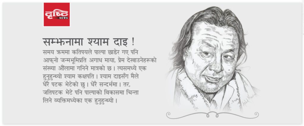 समय क्रममा कतिपयले पाल्पा छाडेर गए पनि आफ्नो जन्मभूमिप्रति अगाध माया, प्रेम देखाउनेहरुको संख्या औंलामा गनिने मात्रको छ । त्यसमध्ये एक हुनुहुन्थ्यो श्याम कक्षपति । श्याम दाइसँग मैले धेरैपटक भेटेको छु । धेरै सन्दर्भमा । तर, जतिपटक भेटे पनि पाल्पाको विकासमा चिन्ता लिने व्यक्तिमध्येका एक उहाँ हुनुहुन्थ्यो ।