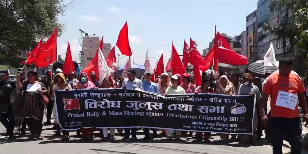 काठमाडौं । नागरिकता विधेयक देशघाती भएकाले खारेज गर्नुपर्ने भन्दै नेपाल मजदुर किसान पार्टीलेले काठमाडौंमा विरोध प्रदर्शन गरेको छ ।