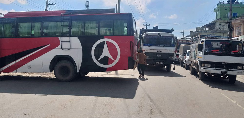 कर बृद्धिको विरोधमा यातायात व्यवसायीद्वारा चक्का जाम
