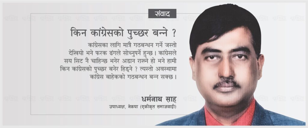 कांग्रेसका लागि मात्रै गठबन्धन गर्ने जस्तो देखियो भने फरक ढंगले सोच्नुपर्ने हुन्छ । कांग्रेसले सय सिट नै चाहिन्छ भनेर अडान राख्ने हो भने हामी किन कांग्रेसको पुछार बनेर हिड्ने ? त्यस्तो अवस्थामा कांग्रेस बाहेकको गठबन्धन बन्न सक्छ ।