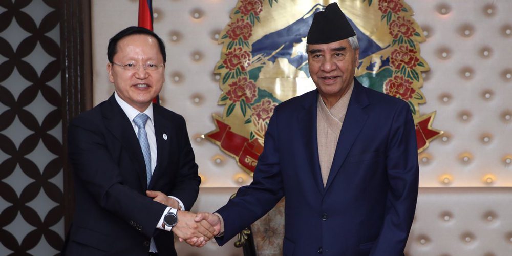 काठमाडौं । सामसङ इलेक्ट्रोनिक्सका ग्लोबल प्रेसिडेन्ट तथा सिएफओ एच के पार्कले प्रधानमन्त्री शेरबहादुर देउवासँग भेट गरेका छन् । नेपालको औपचारिक भ्रमणका क्रममा रहेका उनले बुधबार प्रधानमन्त्री देउवासँग शिष्टाचार भेट गरेका हुन्। उक्त भेटमा पार्कसँग कम्पनीका अन्य वरिष्ठ अधिकारीहरूको पनि सहभागिता रहेको थियो ।