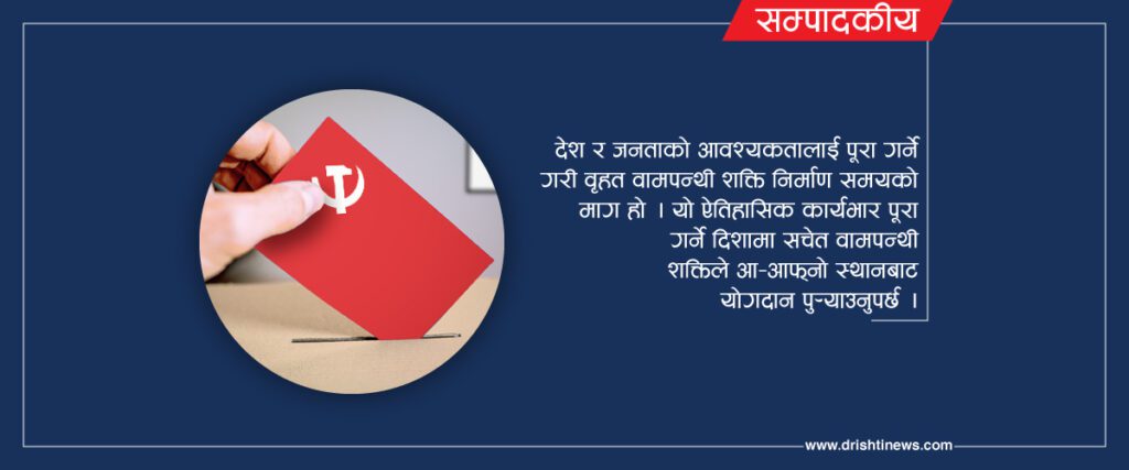 यो ऐतिहासिक कार्यभार पूरा गर्ने दिशामा सचेत वामपन्थी शक्तिले आ–आफ्नो स्थानबाट योगदान पु¥याउनुपर्छ ।