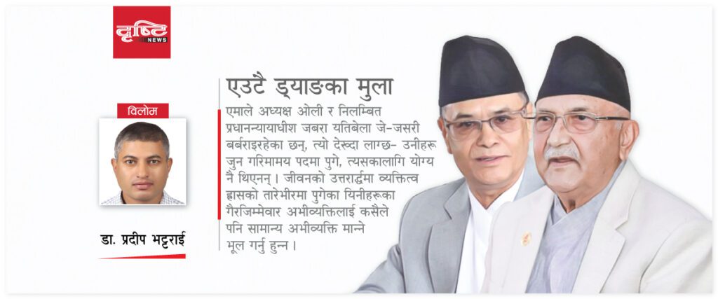 अहिले यी दुवैको अवस्था पनि लगभग उस्तै छ । ओली सत्ता गठबन्धनसामु निरीह बनेर राजनीतिक जीवनको दुःखद् अन्त्यको उल्टो दिनगन्तीमा छन् । एकातिर ओली मङ्सिर ४ ले ल्याउने सम्भावित परिणामले बनाउने आफ्नो अनुहार कल्पेर अहिले नै तर्सिरहेका छन् भने अर्कोतिर, जबरा महाअभियोगको कठघरामा उभिएर आफ्नो करिअरुको दुःखद् अवशान पर्खिरहेका छन् ।