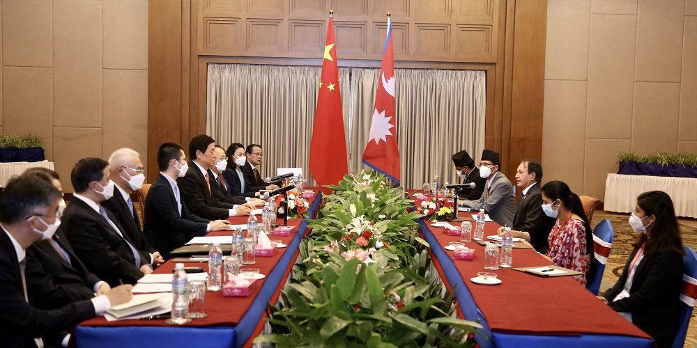 काठमाडौँ । परराष्ट्रमन्त्री डा. नारायण खड्कासँग नेपालको औपचारिक भ्रमणमा रहेका जनवादी गणतन्त्र चीनको राष्ट्रिय जनकङ्ग्रेस, स्थायी समितिका अध्यक्ष ली चान्शुले शिष्टाचार भेटवार्ता गरेका छन् ।