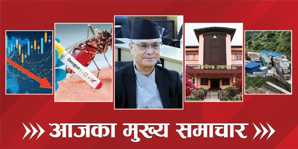 १. देशभर फैलिएको डेङ्गु संक्रमणले भयावह रूप लियो, डेङ्गु रोगको नियन्त्रण र उपचारका लागि कीटनाशक औषधि छर्कन राष्ट्रियसभाका सदस्यहरूको माग, डेङ्गु संक्रमणले भयावह रूप लिइसक्दा पनि सरकार मौन रहेको भन्दै आलोचना ।