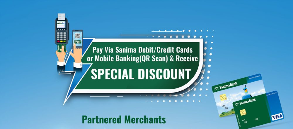 काठमाडौं । सानिमा बैंकले आफ्ना ग्राहकलाई डिजिटल बैंकिङका माध्यमहरू प्रयोग गरी डिजिटल भुक्तानीमा प्रोत्साहन गर्न थप २० वटा मर्चेन्टमा छुटको व्यवस्था गरेको छ । बैंकले सानिमाको भिसा डेबिट–क्रेडिट कार्ड र सानिमा मोबाइल बैंकिङ एप प्रयोगकर्ताहरूले डिजिटल भुक्तानी गरी विभिन्न मर्चेन्टहरूको वस्तु–सेवाहरूको खरिदमा छुट पाउने भएका हुन् ।