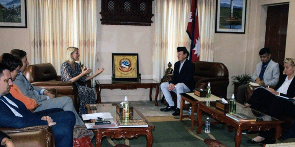 काठमाडौं । युरोपेली संसदीय प्रतिनिधिमण्डलको टोलीले परराष्ट्रमन्त्री डा. नारायण खड्कासँग भेट गरेको छ । नेपालको दुईदिने भ्रमणमा बिहीबार काठमाडौं आइपुगेका यो टोलीले शुक्रबार बिहान मन्त्रालयमा डा. खड्कासँग भेट गरेको हो ।