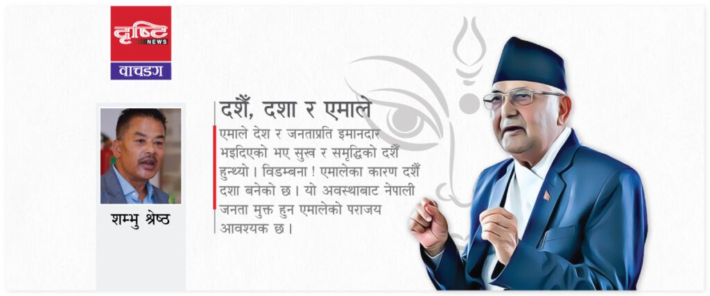 यदि, एमाले यो देश र जनताप्रति इमानदार भइदिएको भए यस पटकको दशैँ सुख, समृद्धिको दशैँ बन्ने थियो । तर, दुर्भाग्य एमालेको कारण दशैँ दशा बनेको छ । यो अवस्थाबाट नेपाली जनता मुक्त हुन पनि एमालेको पराजय आवश्यक छ ।
