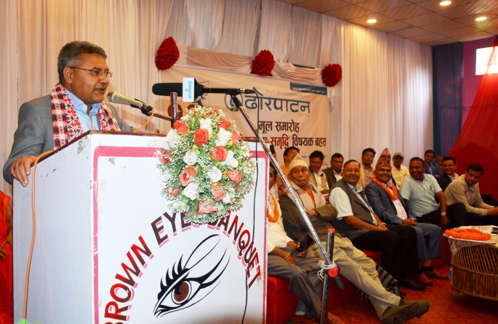 कार्यक्रममा नेपाल कम्युनिष्ट पार्टी (नेकपा)का स्थायी कमिटी सदस्य तथा स्कूल विभागका उपप्रमुख देवेन्द्र पौडेलले सङ्घीयता कार्यान्वयनसँगै समृद्धिका लागि आधार निर्माण भइरहेको भन्दै सरकारले गति लिइरहेको दाबी गर्नुभयो । उहाँले जुनसुकै पार्टी भए पनि विकास र समृद्धि साझा नारा भएको बताउनुभयो ।
