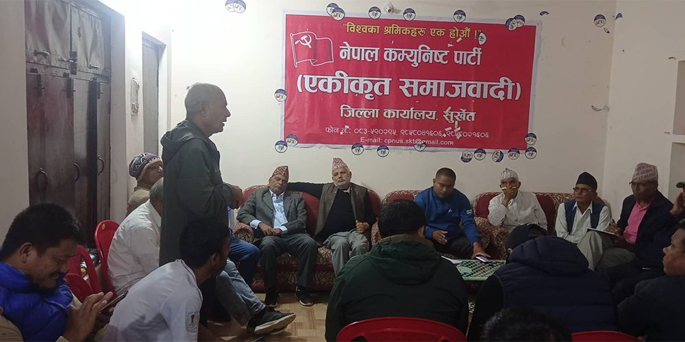 सुर्खेत । कुनै पनि क्षेत्र आफ्नो दललाई भाग नपरेपछि सुर्खेतमा नेकपा (एकीकृत समाजवादी)ले विद्रोहको चेतावनी दिएको छ ।