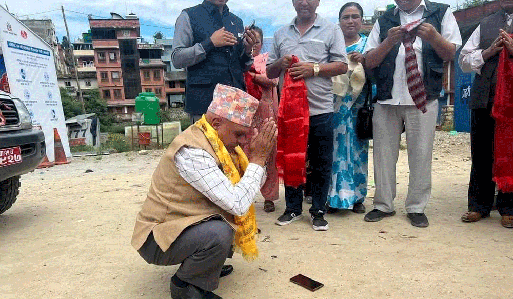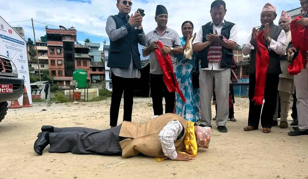 काभ्रे । नेपाली काङ्ग्रेसका नेता शिव हुमागाइँले टिकट पाएपछि खुसी हुँदै भुँइलाई लम्पसार परेर ढोकेका छन् । उनले आफ्ना पार्टीका कार्यकर्ता र शुभचिन्तकमाझ भुइँलाई ढोगेका हुन् ।