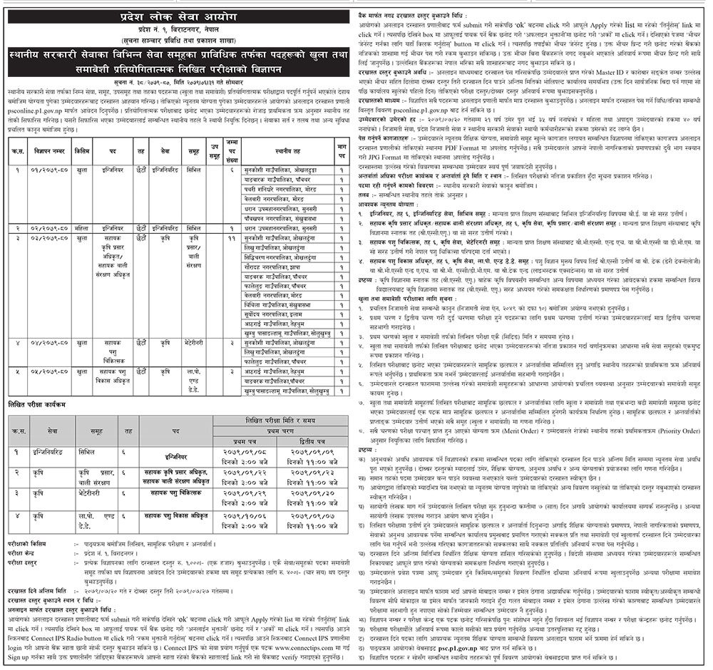 काठमाडौं । प्रदेश १ लोकसेवा आयोगले प्राविधिक तर्फका पदको विज्ञापन खुलाएको छ ।