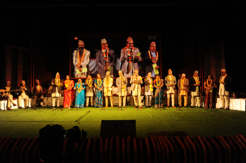 प्रज्ञा भवन र डबलीमा खचाखच भरिएका दर्शकका अगाडि अच्युतराम भन्डारीको नेतृत्वमा ३८ जनाले तवलाबाट दर्शकलाई स्वागत गरे ।