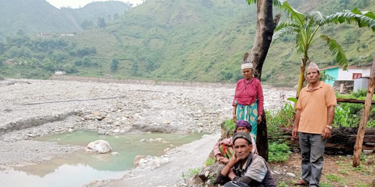 खोलाले बगाउन बचेको जमिनमा दुई केजी जति कोदो फलेको देखाउँदै प्रेमबहादुर भन्छन्, ‘घरमा छ जना छौं । आफू बूढो भइसकें । छोराको त्यस्तो हालत छ (प्यारालाइसिसको बिरामी) । नाति–नातिना सानै छन् ।’ खातीगाउँमा सर्वश्व गुमाएका प्रेमबहादुर र ज्ञानदेवीको परिवार हुन् । अन्य परिवारको पनि घरबाहेक केही छैन ।