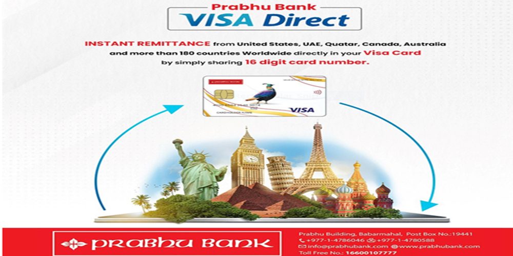प्रभु बैंकले सञ्चालनमा ल्याएको भिसा डाइरेक्ट रेमिट्यान्स सेवा उपभोग गरी प्रभु बैंकका भिसा डेबिट कार्डका सम्पूर्ण ग्राहक महानुभावले अधिकतम लाभ लिन सक्नेमा बैंकले पूर्ण विश्वास लिएको जनाइएको छ ।