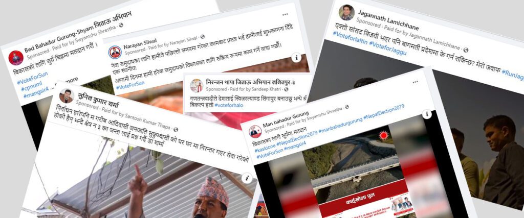 पार्टीका शीर्ष नेतादेखि स्वतन्त्र उम्मेदवारहरूले पछिल्लो एक महिनामा अमेरिकी डलर ८० हजार २८० अर्थात एक करोड चार लाख ६९ हजार ५ सय ७९ रुपैयाँ फेसबुकको विज्ञापनमा खर्च गरेका हुन् ।