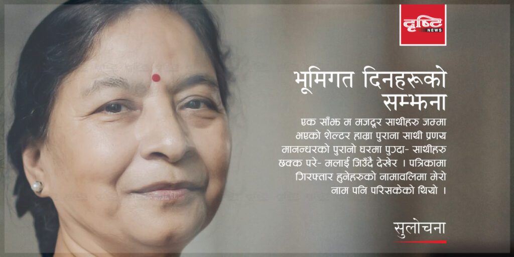 यथार्थ सपना जस्तो नरम होइन, कठिनाईसँग जोडिएको थियो । जिन्दगीलाई अगाडि बढाउन फलामको जब्बर ढोका खोलेर अगाडि बढेको थिएँ । अब अर्कै जीवन सुरु भयो– भूमिगत बस्नु पर्ने भयो ।