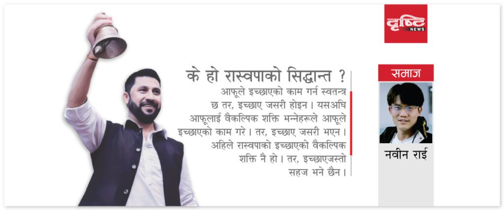 आफूले इच्छाएको काम गर्न स्वतन्त्र छ तर, इच्छाए जसरी होइन । यसअघि आफूलाई वैकल्पिक शक्ति भन्नेहरूले आफूले इच्छाएको काम गरे । तर, इच्छाए जसरी भएन । अहिले रास्वपाको इच्छाएको वैकल्पिक शक्ति नै हो । तर, इच्छाएजस्तो सहज भने छैन ।