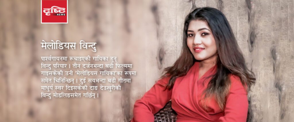 अहिलेसम्म गाएका गीतहरु पनि मेलोडियस नै छन् ।’ सानैदेखि गायनमा रुची भएपनि २०६९ सालमा आएर स्थानीयस्तरको रियालिटी शो ‘सरयु स्टार’मा विजेता बनेपछि मात्र गीसंगीतलाई करिअरका रुपमा लिने निर्णय गरेको उनको भनाइ छ । उनै मेलोडियस गायिका विन्दु परियारसँग दृष्टिको जम्काभेट-