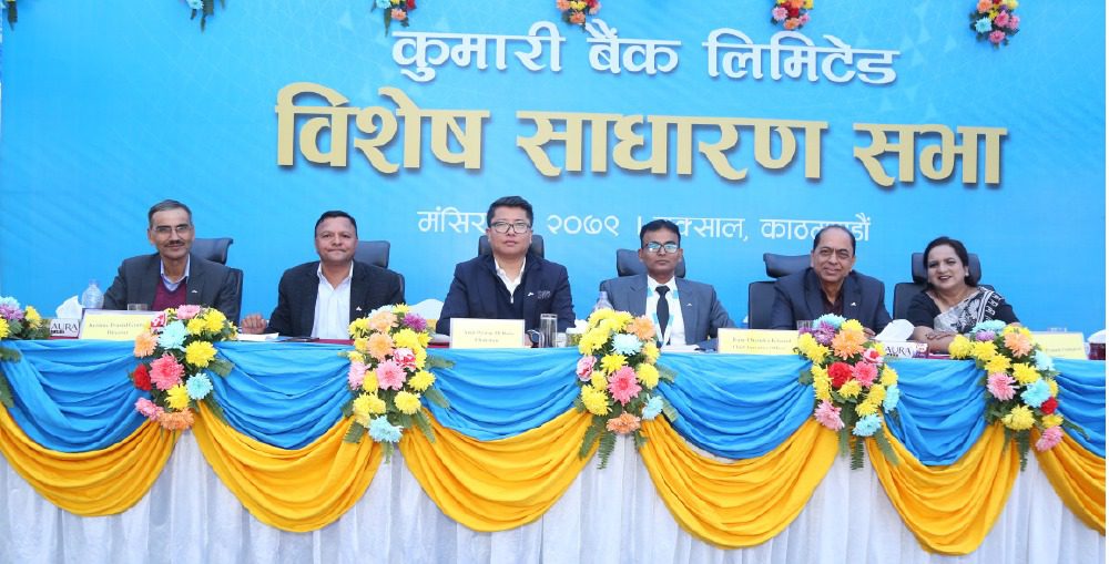 काठमाडौं । कुमारी बैंक लिमिटेडको विशेष साधारणसभाले नेपाल क्रेडिट एन्ड कमर्स बैंकसँग मर्जरका लागि अन्तिम स्वीकृति प्रदान गर्ने प्रस्ताव पारित गरेको छ । बैंक सञ्चालक समितिका अध्यक्ष अमिरप्रताप जंगबहादुर राणाको अध्यक्षतामा भएको विशेष साधारणसभाले मर्जरको सम्बन्धमा अन्तिम सम्झौतापत्र स्वीकृत गर्ने तथा मर्जरसम्बन्धी बाँकी कार्य र आवश्यक प्रक्रिया पूरा गर्ने प्रस्ताव पारित गरेको हो ।