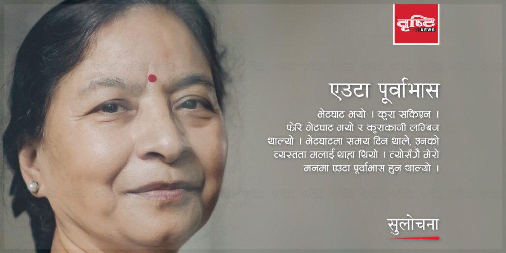 भेटघाट भयो । कुरा सकिएन । फेरि भेटघाट भयो र कुराकानी लम्बिन थाल्यो । भेटघाटमा समय दिन थाले, उनको व्यस्तता मलाई थाहा थियो । त्योसँगै मेरो मनमा एउटा पूर्वाभास हुन थाल्यो ।