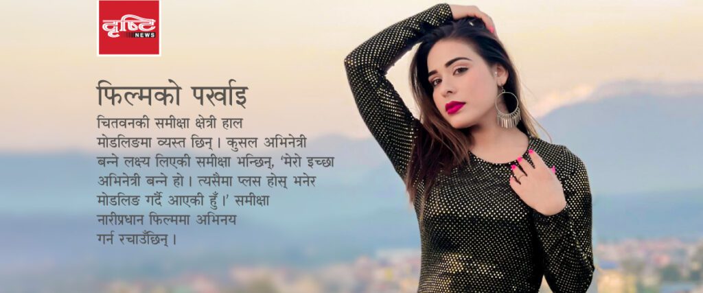 रेखा थापा र निरुता सिंहजस्ता अभिनेत्रीको ‘बोल्ड अभिनय’बाट प्रभावित भएर मोडलिङ रोजेकी चितवनकी समीक्षा भन्छिन्, ‘बुबाआमा भन्नुहुन्छ– तोत्तेबोली बोल्न थालेदेखि नै रेखा थापाजस्तै बन्छु भन्थे रे ।’ कुसल अभिनेत्री बन्ने लक्ष्यसहित संघर्षरत समीक्षा भन्छिन्, ‘अहिले लर्निङ प्रियडमै छु । सिकेर–बुझेर फिल्मी क्षेत्रमा करिअर बनाउने उद्देश्य लिएकी छु ।’ समीक्षा क्षेत्रीसँग दृष्टिको जम्काभेट :