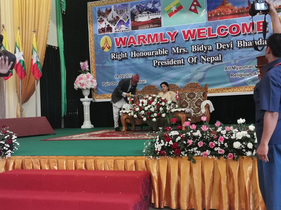 म्यानमारको राजकिय भ्रमणमा रहेकी राष्ट्रपति बिद्यादेवी भण्डारीलाई म्यानमारमा नेपाली भाषीले एका कार्यक्रम आयोजना गरे स्वागत गरेका छन् ।