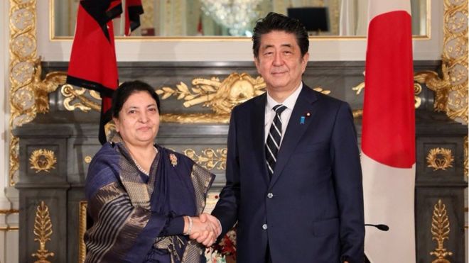 जापान सरकारको निमन्त्रणालाई स्वीकार गरी जापानका सम्राट्को गद्दी आरोहण समारोहमा सहभागिता जनाउनुभएकामा जापानका प्रधानमन्त्री सिन्जो आबेले राष्ट्रपति भण्डारीलाई धन्यवाद दिनुभएको गृहमन्त्री थापाले सुनाउनुभयो । राष्ट्रपति भण्डारीसँग जापानका प्रधानमन्त्रीले गर्नुभएको भेटमा उहाँले नेपाल–जापानबीच रहिआएको सुमधुर सम्बन्ध र नेपालको सामाजिक आर्थिक विकासमा जापानको सदैव साथ रहने विश्वास दिलाउनुभएको थियो ।
