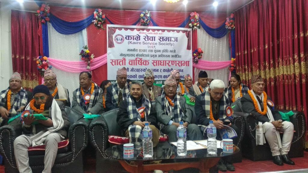 काभ्रे सेवा समाजले काभ्रे स्थायी घर भएर विभिन्न क्षेत्रमा सफल व्यक्तिहरुलाई सम्मानित गरेको छ । समाजको सातौं साधारणसभाको अवसरमा शनिबार सञ्चार तथा सुचना प्रविधि मन्त्री गोकुल प्रसाद बाँस्कोटाले उनीहरुलाई सम्मानित गरेका हुन् ।