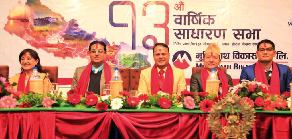 काठमाडौं । मुक्तिनाथ विकास बैंकले १८.५३ प्रतिशत लाभांश दिने भएको छ । सोमबार पोखरामा सम्पन्न बैंकको १३औँ वार्षिक साधारणसभाले १७.६० बोनस सेयर तथा कर प्रयोजनका लागि ०.९३ प्रतिशत नगद लाभांश वितरण गर्ने प्रस्ताव पारित गरेको हो ।