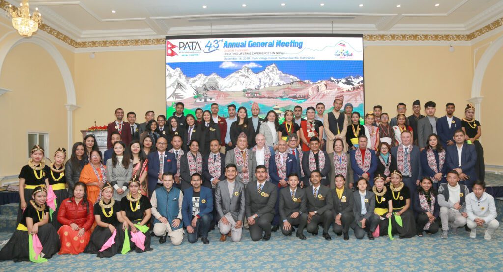 काठमाडौं । प्यासिफिक एशिया ट्राभल एशोसिएसन (पाटा) नेपाल च्याप्टरको ४३औ वार्षिक साधारणसभा गत बुधबार काठमाडौको बुढानिलकण्ठस्थित पार्क भिलेज रिसोर्टमा ‘डिजाइन थिङ्कििङ–क्रिएटिङ लाइफ टाइम एक्सपेरिएन्सेस इन नेपाल’ भन्ने मूल नाराकासाथ सु–सम्पन्न भएको छ । संघको ४३ औ साधारण सभाले हिमालयन होलिडेज ट्रेकिङका संस्थापक श्री विभूतिचन्द ठाकुरको अध्यक्षतामा १७ सदस्यीय नयाँ कार्यसमिति गठन गरेको छ ।