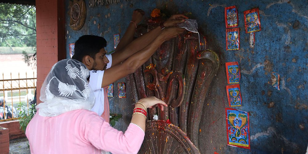 काठमाडौं । आज नागपञ्चमी । परम्पराअनुसार आज नागको पूजाअर्चना गरी घरका मूलढोकामा नागको फोटो टाँसेर मनाइँँदै छ ।