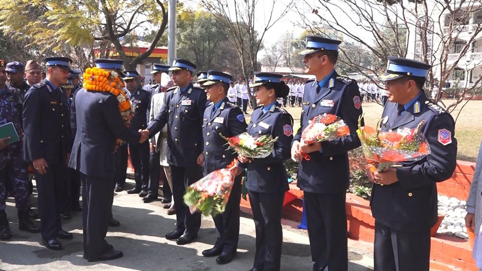 आईजिपी ठाकुर ज्ञवालीलाई प्रहरी प्रधान कार्यालयमा बधाई दिदै एसएसपी श्याम लाल ज्ञवाली