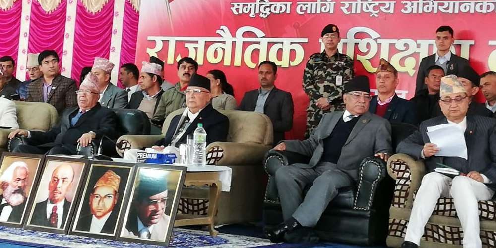 अध्यक्ष एवं प्रधानमन्त्री केपी शर्मा ओली प्रशिक्षण कार्यक्रममा ढिलो गरी आइपुगेका हुन्। उनको नाम सम्बोधन गर्ने नेताको सूचीमा छ।