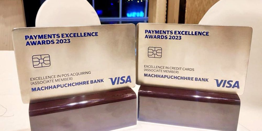 काठमाडौं । माछापुच्छ्रे बैंक लिमिटेड भिसा पेमेन्ट एक्सिलेन्स इन क्रेडिट अवार्ड र एक्सिलेन्स इन पोस अक्वायरिङ सर्भिस २०२३ बाट सम्मानित भएको छ । भिसा इन्टरनेसनलद्वारा काठमाडौंमा आयोजित एक लिडरसीप कन्क्लेभ कार्यक्रममा बैंकलाई उक्त दुई अर्वाड प्रदान गरिएको छ ।\