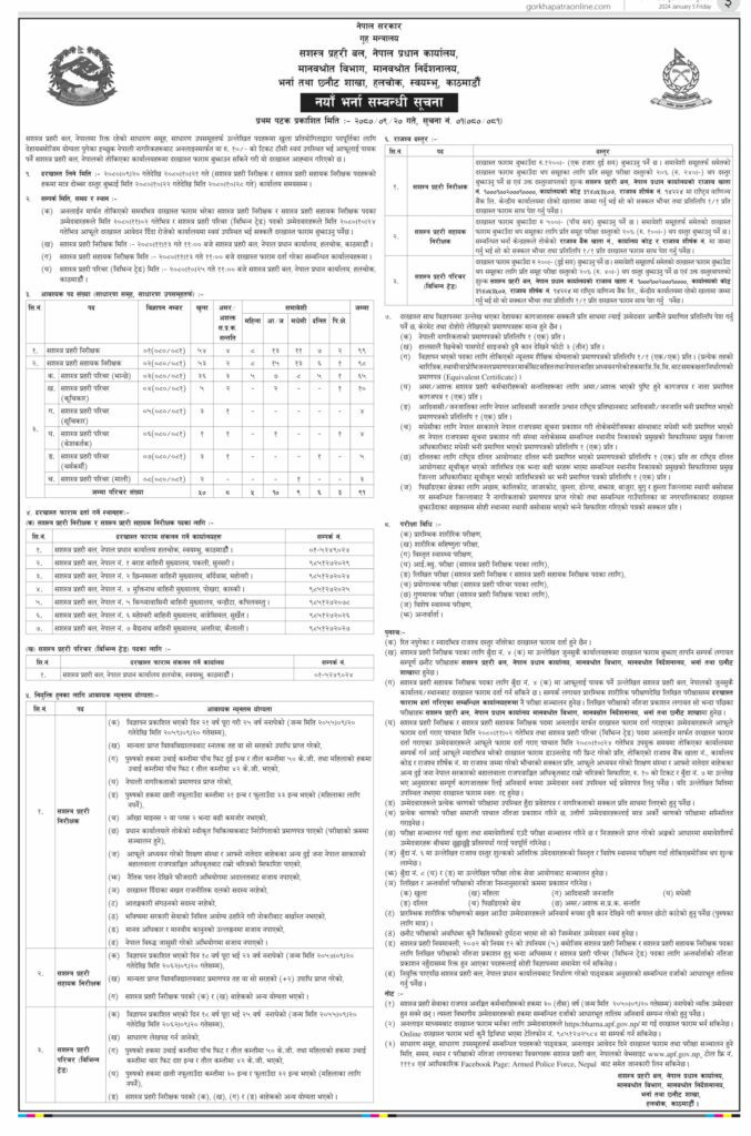 सशस्त्र प्रहरीमा निरीक्षकदेखि मालीसम्मलाई जागिर खुल्यो