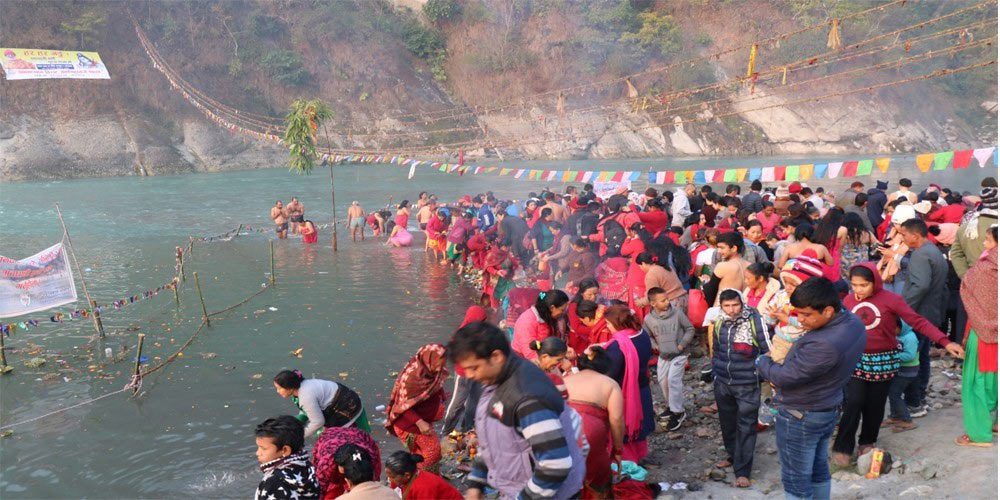 चितवन । पवित्र तीर्थस्थल देवघाटमा माघे सङ्क्रान्तिमा स्नान गर्न आउने भक्तजनको घुइँचो लागेको छ । आइतबार बिहान बेनीमा बाँसको लिङ्गो गाडेर माघे सङ्क्रान्ति मेलाको शुभारम्भ गरिएको थियो । त्यसपछि क्रमशः भक्तजन आउने क्रम सुरु भएको हो ।