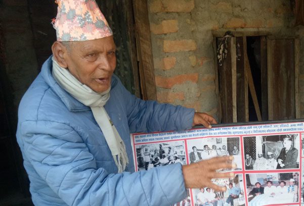 भद्रपुर, २१ फागुन । मेचीनगरको धुलाबारीस्थित टिमाई खोलाको किनारमा झापा विद्रोहका जिउँदा शहीद दुर्गा अधिकारी (सानो) को सानो झुपडी छ । पञ्चायतविरुद्धको आन्दोलनमा १७ वर्ष लगातार जेल जीवन बिताउनुभएका उहाँ झुपडीको साँघुरो दुई कोठामध्ये एउटामा पत्नी रत्नासँगै बस्नुहुन्छ भने अर्कोमा साँझ–बिहान चुल्हो बाल्ने गरिएको छ । पत्नी रत्ना थाइराइड, मधुमेह र मानसिक रोगको बिरामी हुनुहुन्छ । पैसा नभएर नियमित औषधि खान पनि नसकिरहेको दयनीय अवस्था छ ।