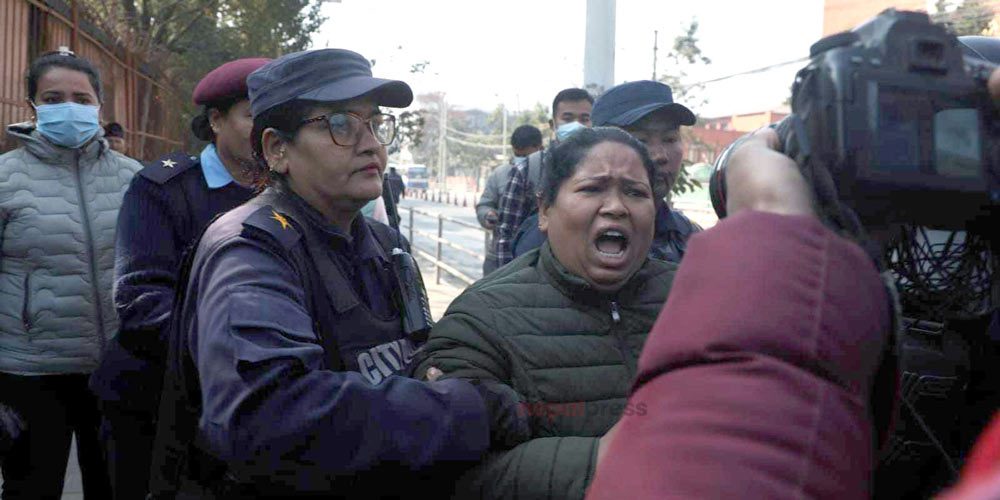 काठमाडौं । न्यायाधीश भुवन गिरीकी पत्नी आरती गिरी रावललाई प्रहरीले गेटबाटै नियन्त्रणमा लिएको छ । मंगलबार बिहान सर्वोच्च पुगेकी गिरीले विरोध प्रदर्शन गर्ने प्रयास गरेपछि प्रहरीले नियन्त्रणमा लिएको हो ।