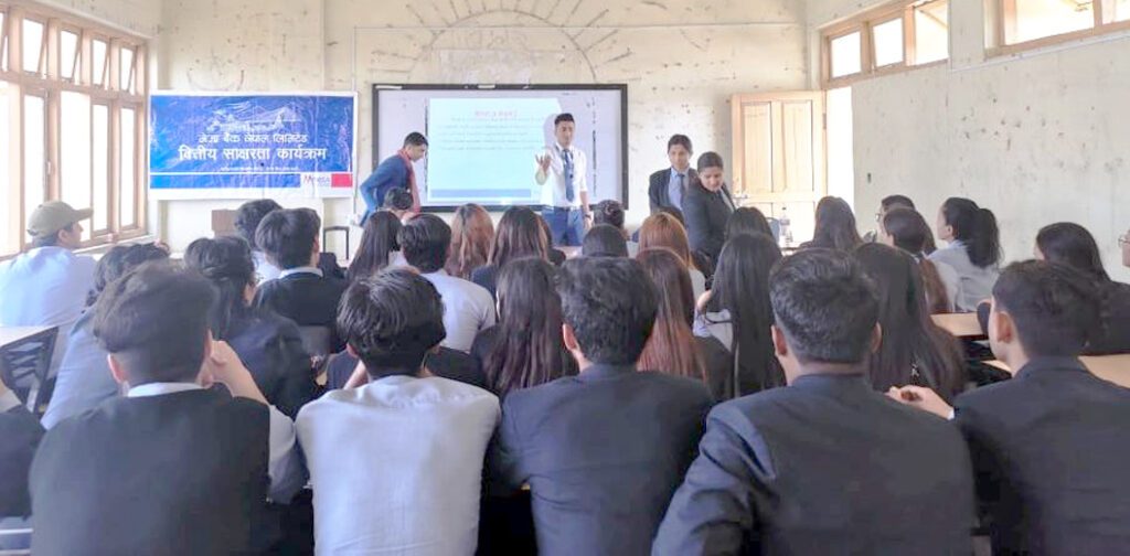 सामाजिक संस्थागत उत्तरदायित्व अन्तरगत मेगा बैंकले सुनसरीको धरानस्थित महेन्द्र बहुमुखी क्याम्पसमा अध्ययनरत विद्यार्थीहरुलाई वित्तीय साक्षरता कार्यक्रम गरेको हो ।