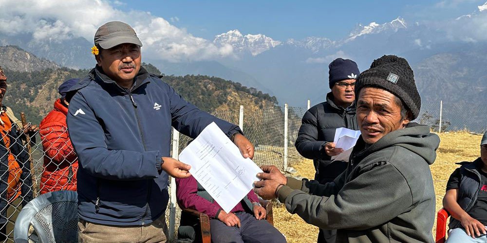 लामो समयदेखि अव्यवस्थित रहेका बसोबासीलाई राष्ट्रिय भूमि आयोगले गाउँपालिकामार्फत निस्सा वितरण गरेको उनले बताए । ‘गाउँपालिकामा वडा नम्बर ७ लापुबाट अव्यवस्थित बसोबासीलाई निस्सा वितरण गर्न थालिएको छ’, उनले भने, ‘पालिकाभित्रका सबै भूमिहीन सुकुम्बासी तथा अव्यवस्थित बसोबासीलाई क्रमशः निस्सा वितरण गर्दै जानेछौँ ।’