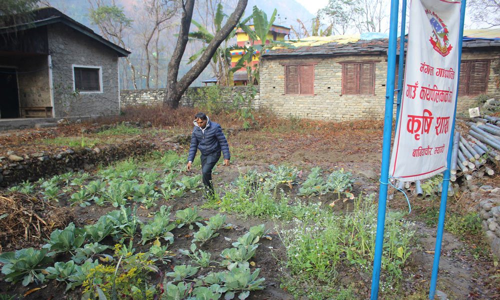 म्याग्दी । म्याग्दीको मङ्गला गाउँपालिकाका जनप्रतिनिधि र कर्मचारीले श्रमदान गरेर बाँझो जमिनलाई करेसाबारीमा रूपान्तरण गरेका छन् ।