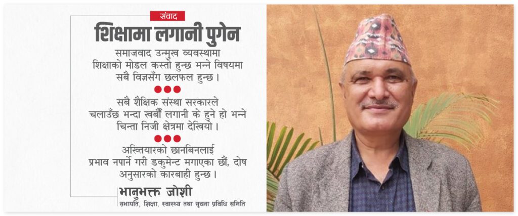 संविधानमै संविधान उन्मुख व्यवस्था भनिएको छ । यसको मुख्य आधार शिक्षा र स्वास्थ्य नै हो । शिक्षामा समाजवाद झल्किने खालको विधेयक आउँछ त ?