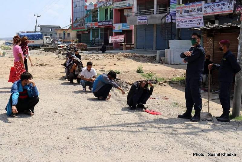 देशका विभिन्न भागमा सरकारको निर्णय कार्यान्वयन गराउन प्रहरीको टोली खटिरहेको छ। केही स्थानमा प्रहरीसँगै सशस्त्र प्रहरी र नगर प्रहरी पनि परिचालित भइरहेको छ। मोरङको उर्लाबारी र पथरी क्षेत्रमा लकडाउनका बेला सडकमा निस्किनेविरुद्ध प्रहरी कडाइका साथ प्रस्तुत भएको छ। प्रहरीले हात भाटा र लाठी बोक्दै लकडाउनमा सडकमा निस्किएकालाई घरतिर लखेटेको थियो । उता कर्णाली प्रदेशको राजधानी सुर्खेतमा प्रहरीले लकडाउन उलंघन गर्नेलाई तह लगाउन नयाँ जुक्ति निकालेको छ। स्थानीय सञ्चारकर्मी सुशील खड्काका अनुसार त्यहाँ लकडाउन उलंघन गर्नेलाई प्रहरीले सडकमै राखेर उठबस गराएको छ। सम्झाइ बुझाइ गर्दा पनि नमान्नेलाई प्रहरीले पक्राउ गरेर नियन्त्रणमा लिइरहेको छ। देशका केही स्थानमा प्रहरीले लकडाउनमा अटेरी गर्नेलाई लाठीसमेत हानेर बल प्रयोग गरेको छ। मंगलबारदेखि सुरु लकडाउनका क्रममा पहिलो दिन देशभरबाट प्रहरीले ६८ जनालाई पक्राउ गरेको थियो। पर्साको वीरगन्जमा लकडाउन उलंघन गर्ने १५० जनालाई दिनभरी एउटा पार्कमा राखेर रिहा गरिएको थियो। पहिलो दिन लकडाउन खुकुलो भएपछि प्रहरीले दोस्रो दिन आज कडाइ गरेको छ। प्रहरीले आज लकडाउन उलंघन गर्नेलाई ठाउँ ठाउँबाट पक्राउ गरेको छ भने सडकमै कारवाही चलाइरहेको छ ।