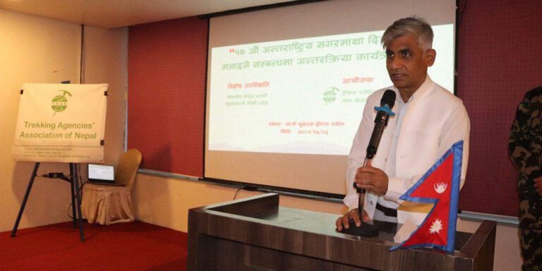 काठमाडौं । कोशी प्रदेशका मुख्यमन्त्री केदार कार्कीले अन्तरराष्ट्रिय सगरमाथा दिवस कोशी प्रदेशले मनाउने बताएका छन् । ट्रेकिङ एजेन्सीज् एसोसिएसन अफ नेपाल (टान)ले आज काठमाडौँमा आयोजना गरेको ‘अन्तरक्रिया कार्यक्रम’मा उनले विश्वको सर्वोच्च शिखर सगरमाथा भएको प्रदेशले कोशीले अन्तरराष्ट्रिय सगरमाथा दिवस मनाउने बताए ।