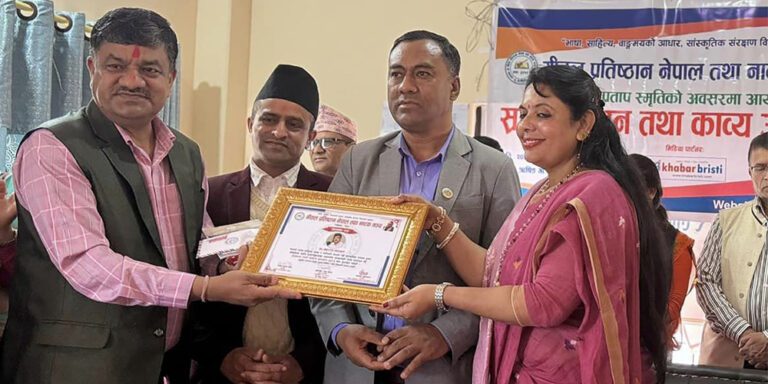 दमौली (तनहुँ) । गीतल प्रतिष्ठान नेपाल तथा नाटक मञ्च तनहुँद्वारा स्थापित क्षेत्रप्रताप स्मृति साहित्य पुरस्कार साहित्यकार एवं सञ्चारकर्मी डा नवराज लम्साललाई प्रदान गरिएको छ ।