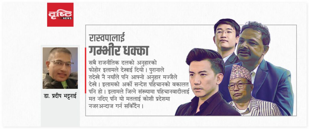 इलाममा शर्मनाक हारेको रास्वपाले अब के भन्छ ? ‘इलाम जितिसकेका छाैँ, मत गन्ने औपचारिकता मात्र बाँकी हो’ भन्ने रास्वपा उपसभापति डा. स्वर्णिम वाग्ले के भन्छन् ? समग्रमा यो निर्वाचनको मूल्याङ्कन रास्वपाले कसरी गर्छ ? अहिले नै केही भन्न सकिन्न । तर, रास्वपाको गति र मति दुबैमा अब गम्भीर धक्का लाग्ने छ । जीतको उन्माद मात्रै देखेको रास्वपालाई यो हार पचाउन निक्कै हजमोला खानुपर्ने हुन्छ ।