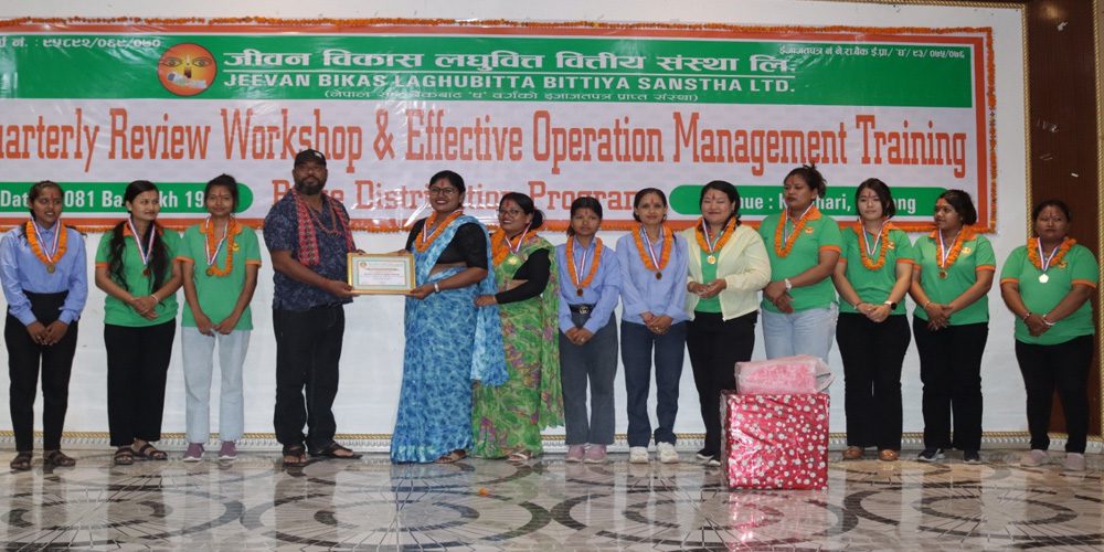 जीवन विकासले उत्कृष्ट जिल्ला प्रमुखको रुपमा मैयाँ राई, शिव चरण दास र मनोजकुमार मण्डललाई पुरस्कृत गरेको हो । उत्कृष्ट शाखा प्रमुख घोषित भएका रिता घिमिरे, अनिल कुमार साह, यदु नन्दन कुमार साहलाई पनि पुरस्कृत गरेको हो ।